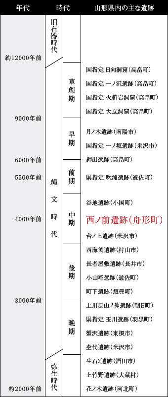 「西ノ前遺跡」は、昭和61年10月に山形県教育委員会が行なった遺跡詳細分布調査によって発見され、埋蔵文化財包蔵地として、県の遺跡台帳・遺跡地図等に登載されました。