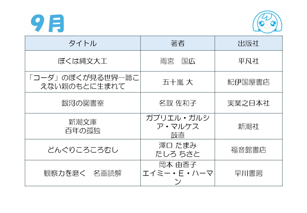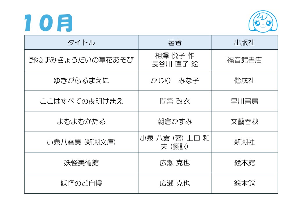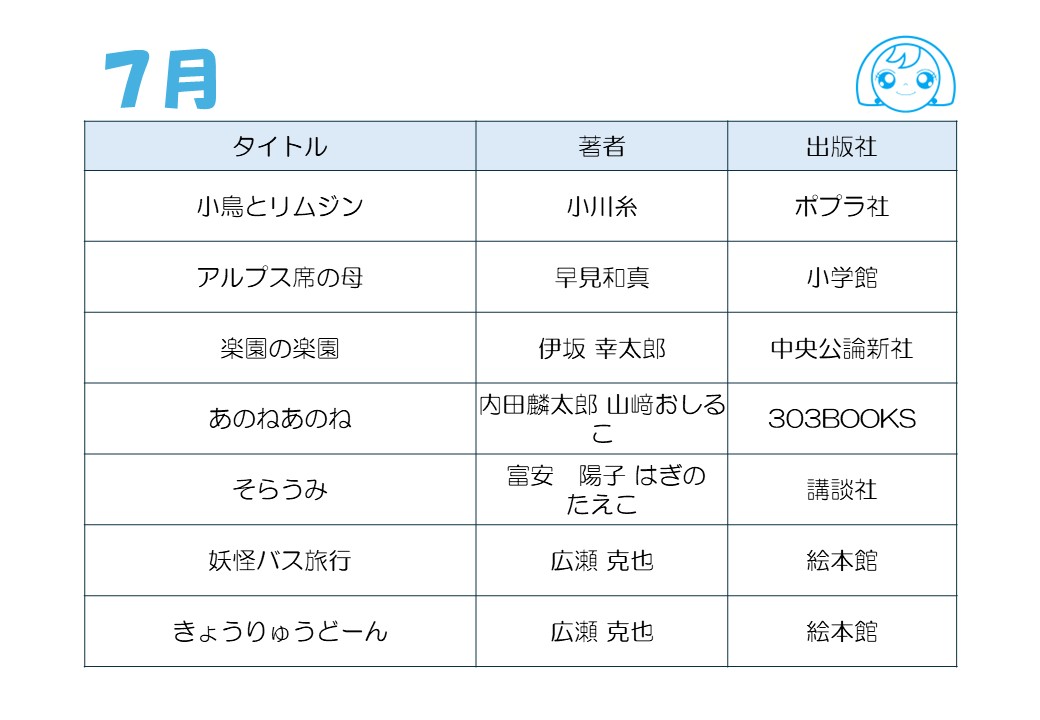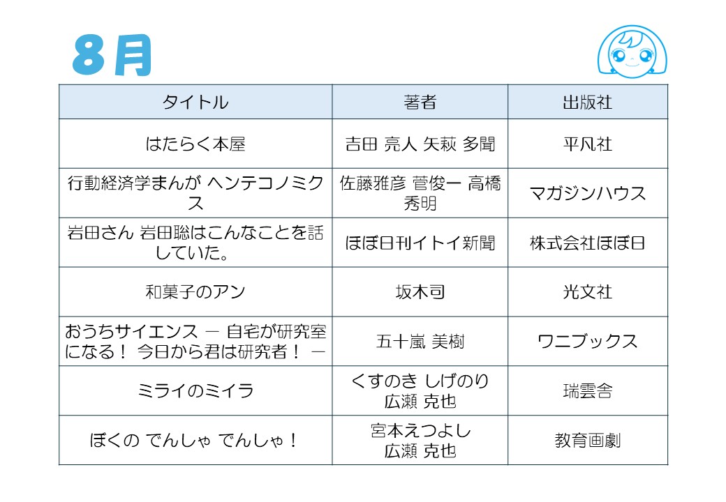 更新日:2025年11月21日 LINEで送る シェア ツイート 令和7年度新刊図書のご案内 月々の新刊の予定です。画像をクリックすると新刊一覧が別ウィンドウで表示されます。 4月の新刊 5月の新刊 6月の新刊 7月の新刊 8月の新刊 9月の新刊 10月の新刊 11月の新刊 12月の新刊 準備中 1月の新刊 準備中 2月の新刊 準備中 3月の新刊 準備中 このページに関する問い合わせ先 教育委員会 社会教育係電話番号:0233-32-2246 メールで問い合わせ このページに関するアンケート